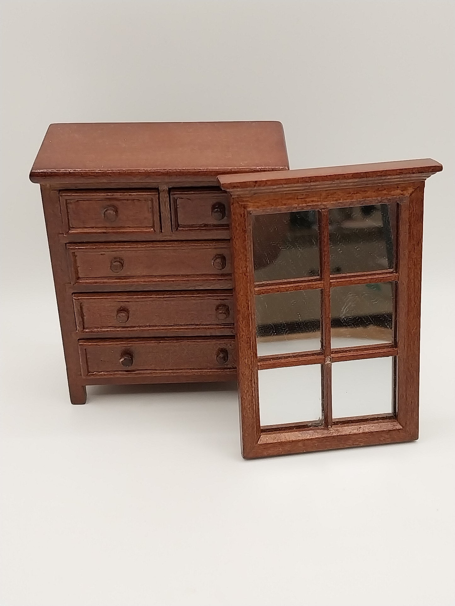 Size: Dresser: 3"W x 1 1/2"D x 3 1/2"H Mirror: 2 1/2"W x 3 1/2"H