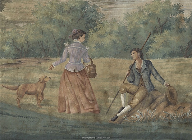 English Park Scene Panorama Wallpaper Mural, 2pc