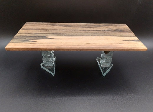 Exotic Modern Wood Table has Glass Legs. Legs are made of stacked glass and has Exotic wood top. Piece is signed by Artisan T. Hayne