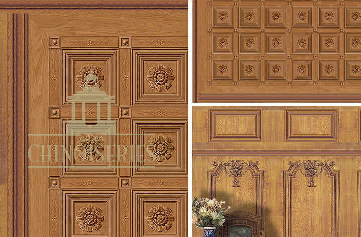This Museum quality wallpaper is manufactured in Spain.Most of the Les Chinoiseries wallpaper designs are copies of actual 18th and 19th Century Wallpaper. Shown below with French Boiserie coordinating wall panel paper.