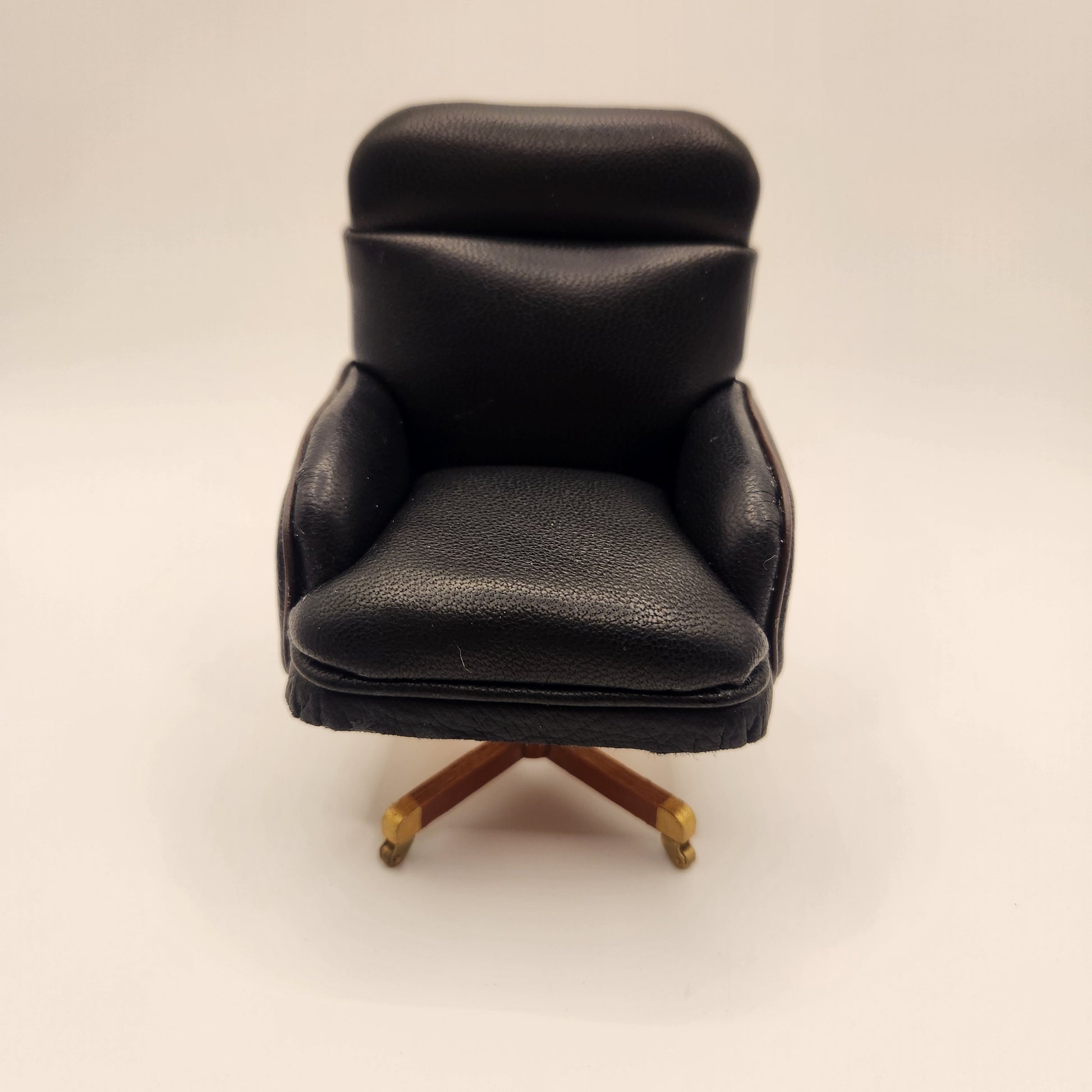 Replica of the Gerald Ford Oval Office Chair made in Walnut with real black Leather. This piece is part of the Platinum Collection Series. This chair was reupholstered and signed by the artisan, Wilson Santiago.