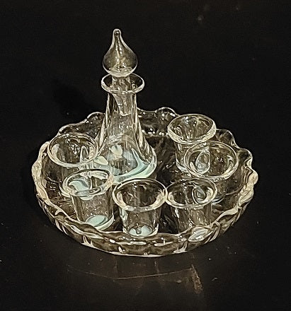 Glass Decanter on Glass Tray and comes with 6 glasses