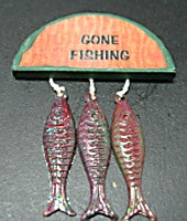 Gone fishing plaque with hanging fish. Plaques come in a variety of color, style, and design