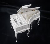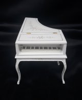 The Piano measures 5 5/8 inches Long x 3 3/8 inches wide x 8 3/8 inches high and is available in a white Painted finish