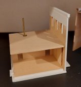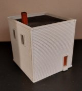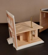 This 1/144" Scale Firehouse is made by W.T. Gudgel and is made of wood. Has brick faux front with Engine No. 1. Top of house is removable to access inside. Firehouse has 2 floors and even the Fire-pole. Inside is ready for decor and furnishings of your choice. Piece is signed and dated by Artisan.