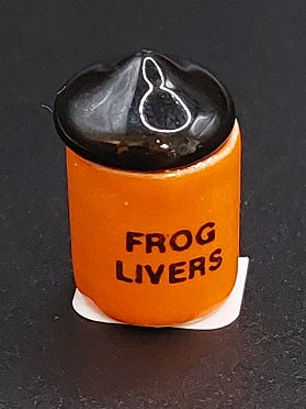 Orange Halloween Cookie jar with black lid, Frog Livers