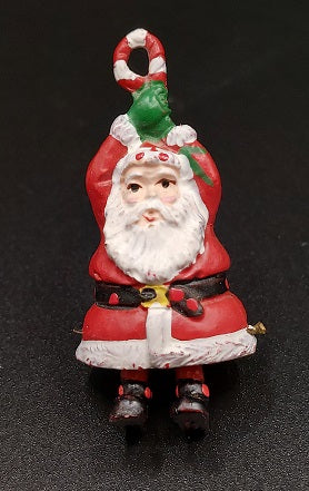 Hanging Santa with jointed legs that swing is hand painted pewter