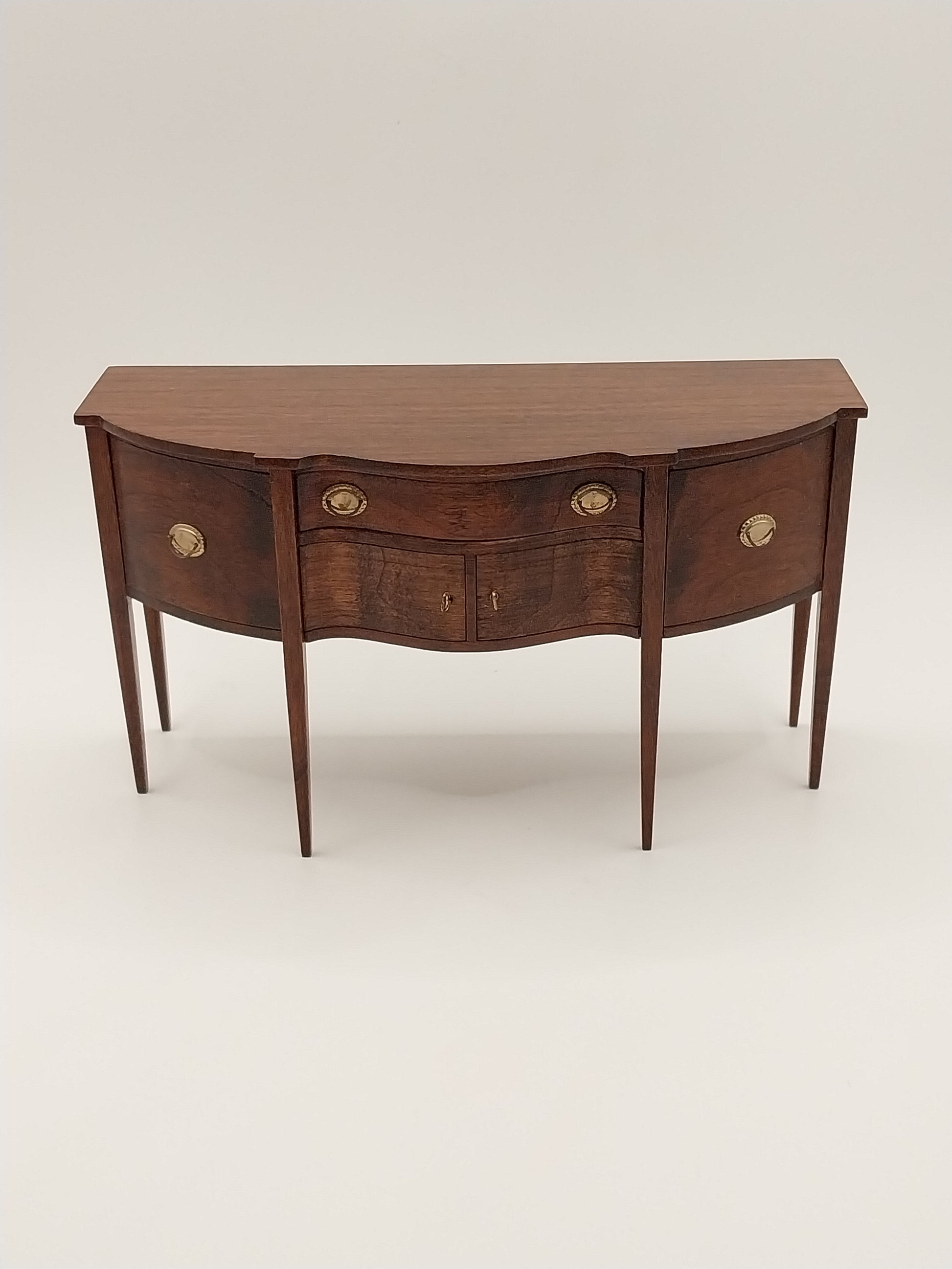 This Hepplewhite Sideboard is made by Artisan Roger Gutheil and is done in a Cherry. Sideboard has side cabinet doors and 2 front lower cabinet doors and 1 drawer, all working. Piece is signed by Artisan.