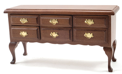 This Huntboard comes in a Walnut finish, comes with 6 small drawers with brass hardware.