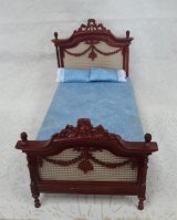 This Jeanne Swag Bed with Cane is made by Bespaq and comes in a New Walnut finish. Bed has blue Comforter set.