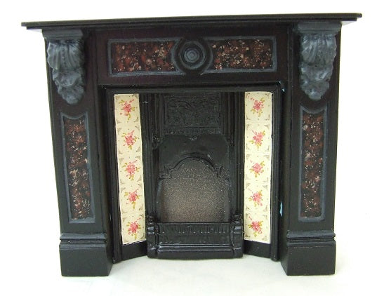This Late Georgia Fireplace is beautifully hand finished in slate with faux enameled panels. This Victorian Fireplace comes with mantle, firebox insert and a 12 volt glowing coals. This required a fire wall.