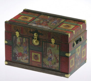 This Lithograph Wooden Trunk Kit is a Wonderland theme. Easy to assemble and comes with all hardware.