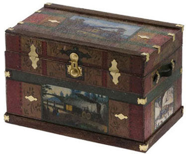 Trunk kit with wood, lithographed train designs paper, and hardware. Easy to assemble
