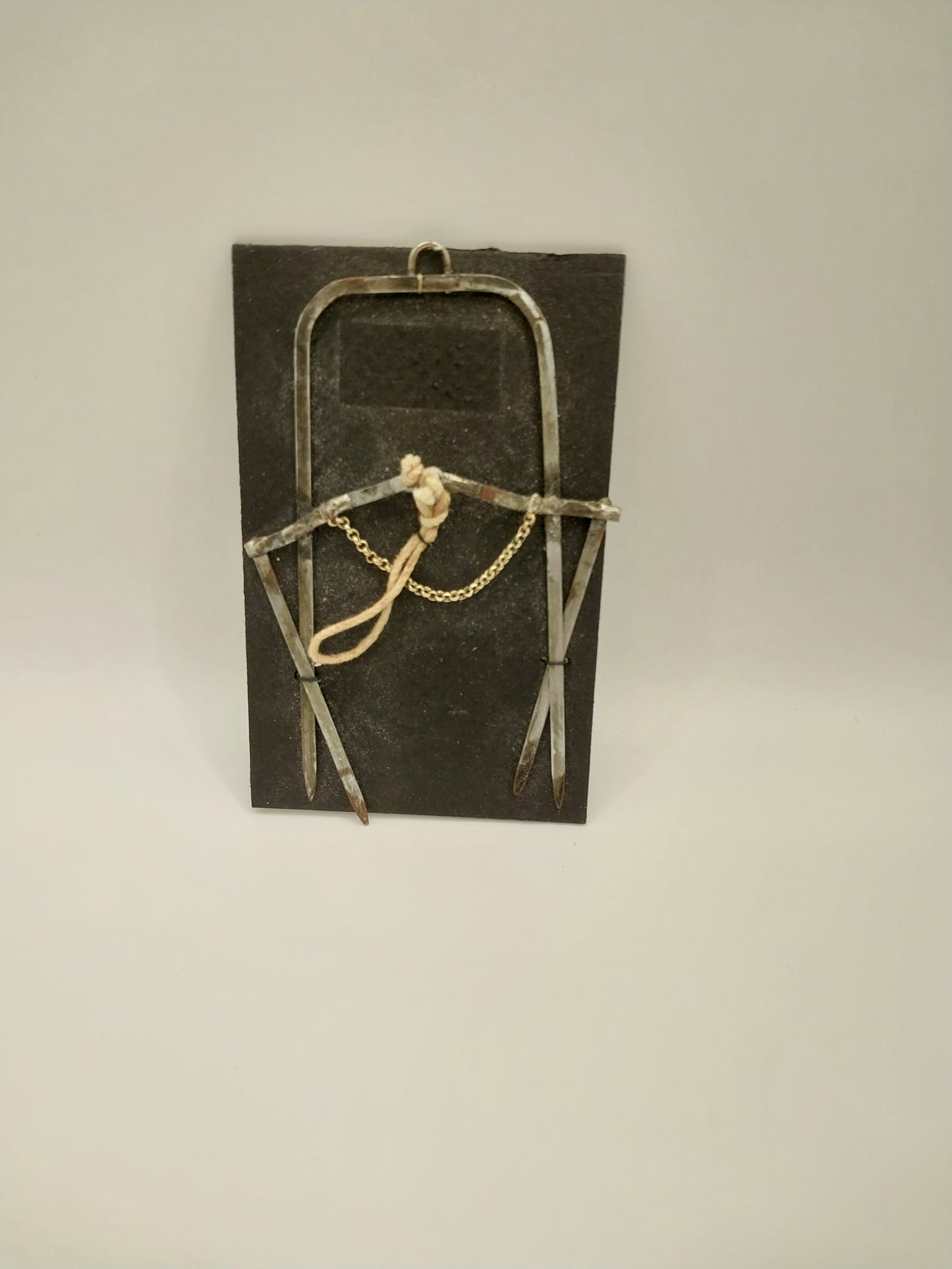 This Hay Fork is handmade by Artisan Fred Cobbs. Hay Fork is made of soldered metal with chain and rope.