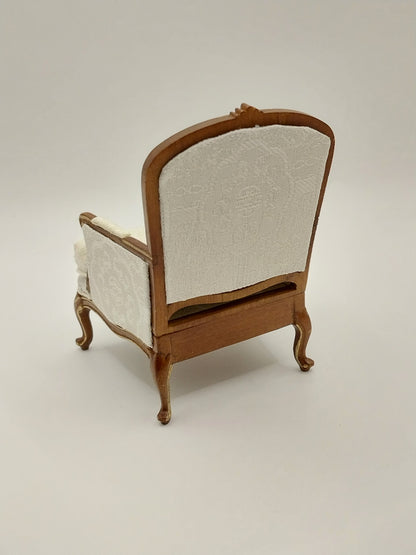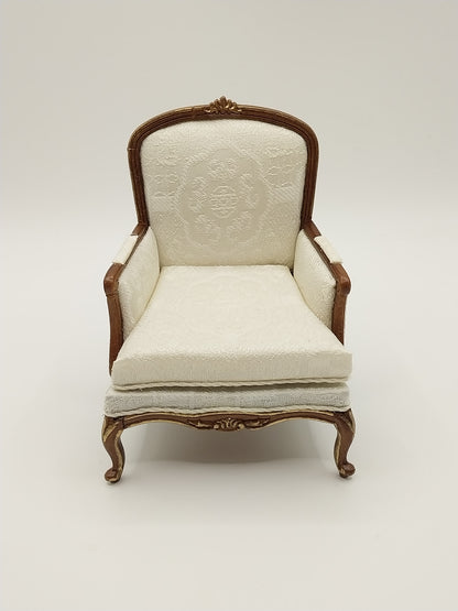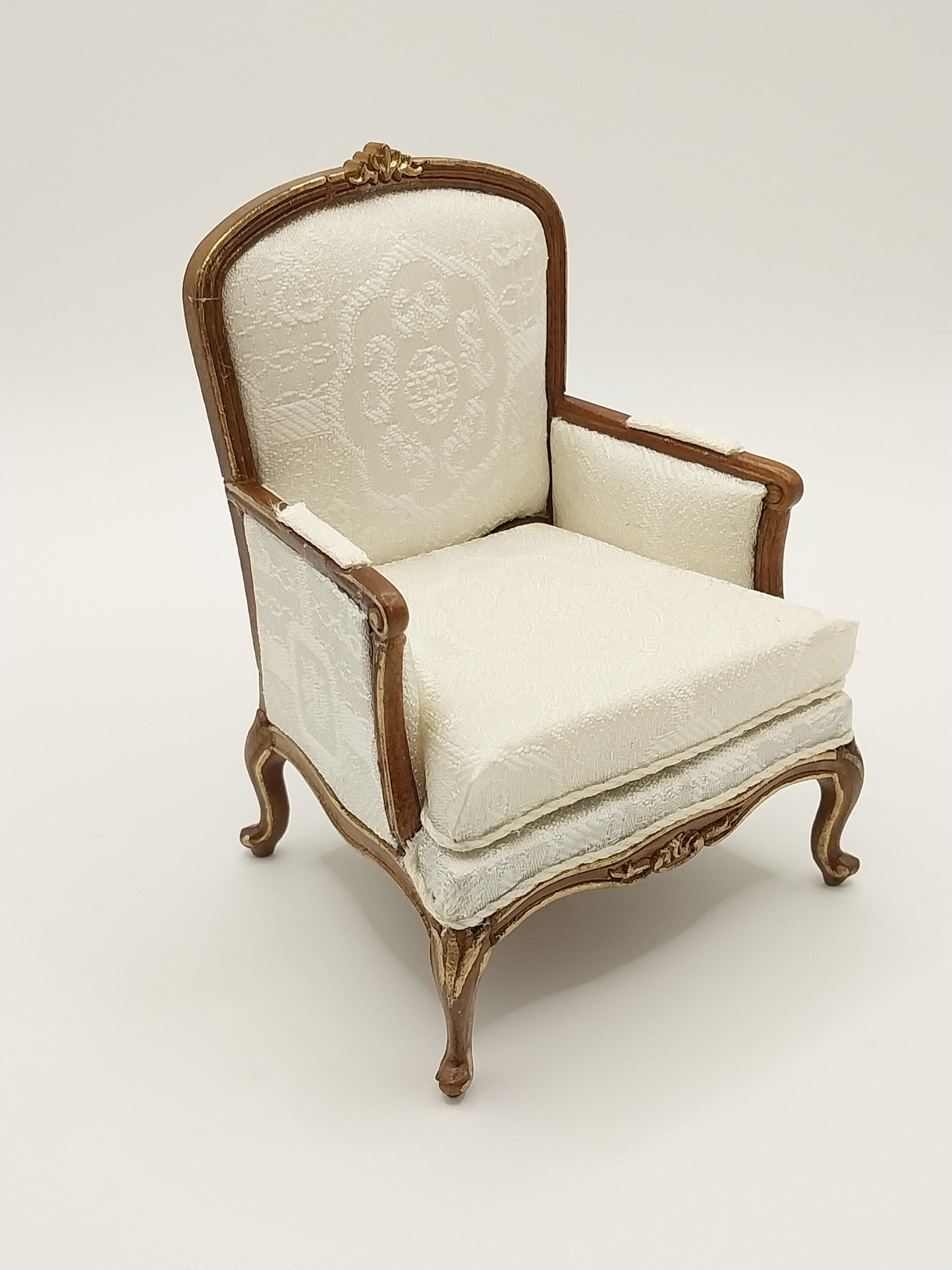 Louis XV Arm Chair, Walnut, Ivory Brocade
