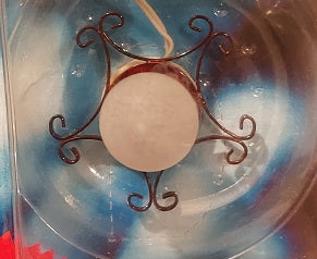 Black Ornate Ceiling Light with frosted ball shade, works with a 12 Volt electrical system.