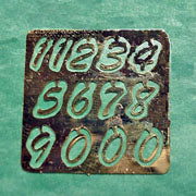 Brass house numbers - set includes three zeroes, two ones, and one of all other digits.