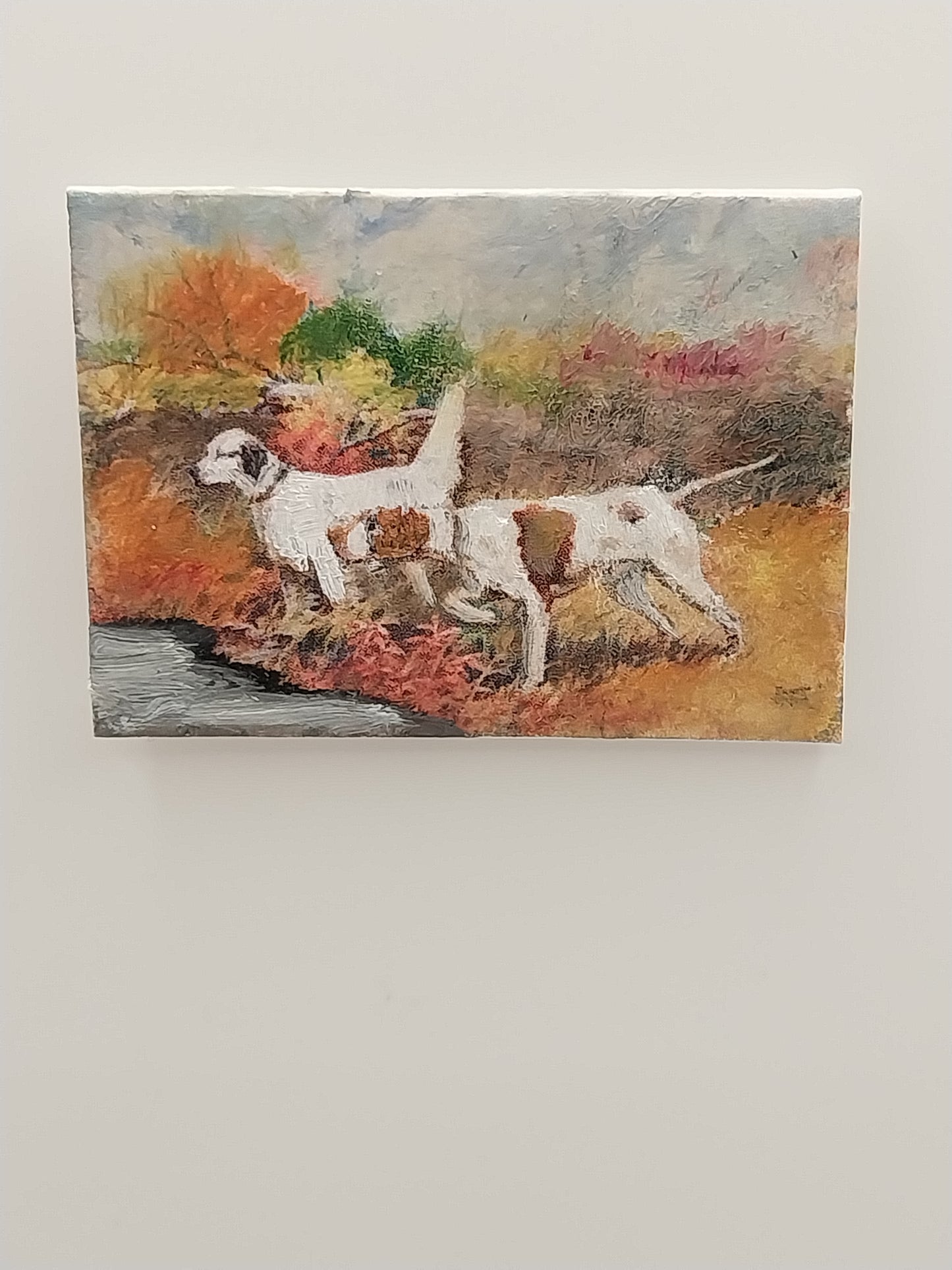 Oil Painting, 2 Pointer Hunting Dogs in the Fall