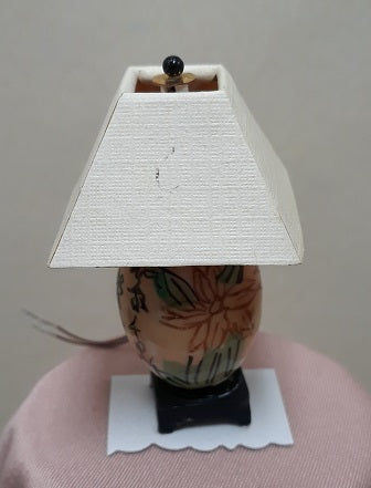 Cream Oriental Base Lamp with Cream Shade, Works with a 12 Volt Electrical System.