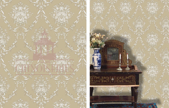 This Museum quality wallpaper border is manufactured in Spain. Most of these wallpapers designs are copies of actual 18th and 19th Century Wallpaper.