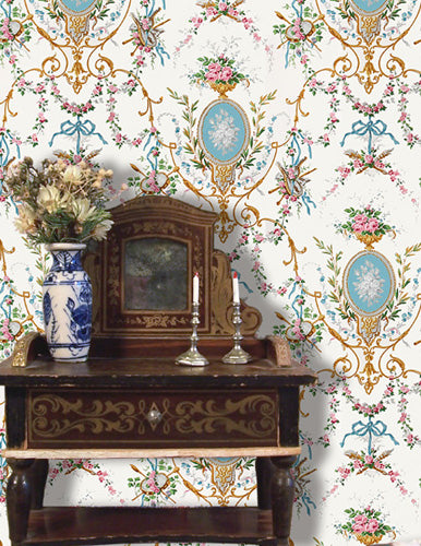 This Museum quality wallpaper is manufactured in Spain. Most of these wallpapers designs are copies of actual 18th and 19th Century Wallpaper.
