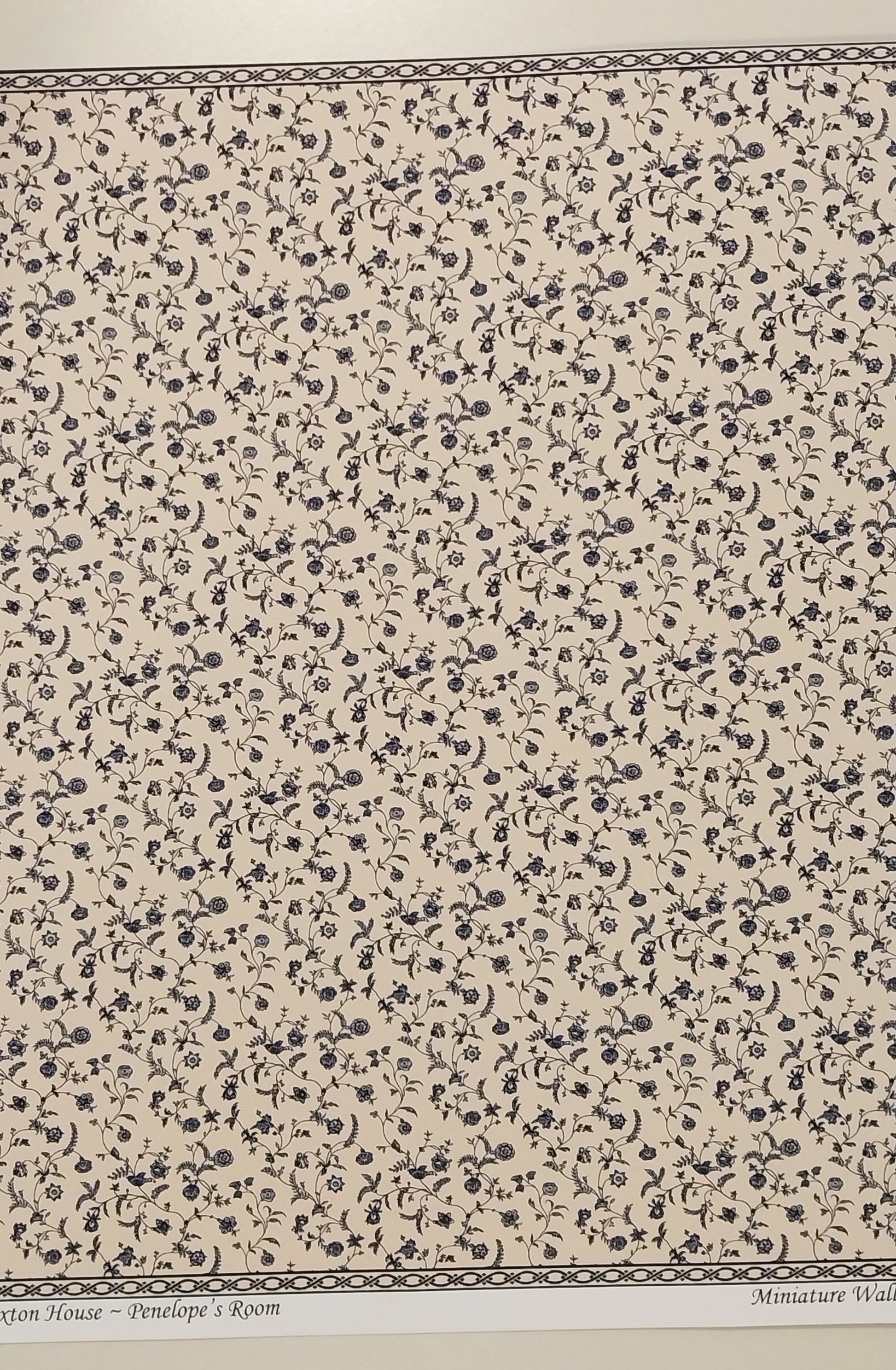Replica of fine chintz wallpaper supplied by Chippendale and copied from fragments of the 1774 wallpaper. The very fine furniture in the bedroom was furnished by Chippendale. This wallpaper was acquired through a collector's estate and made by Susan Bembridge Designs. The wallpaper is in perfect condition.