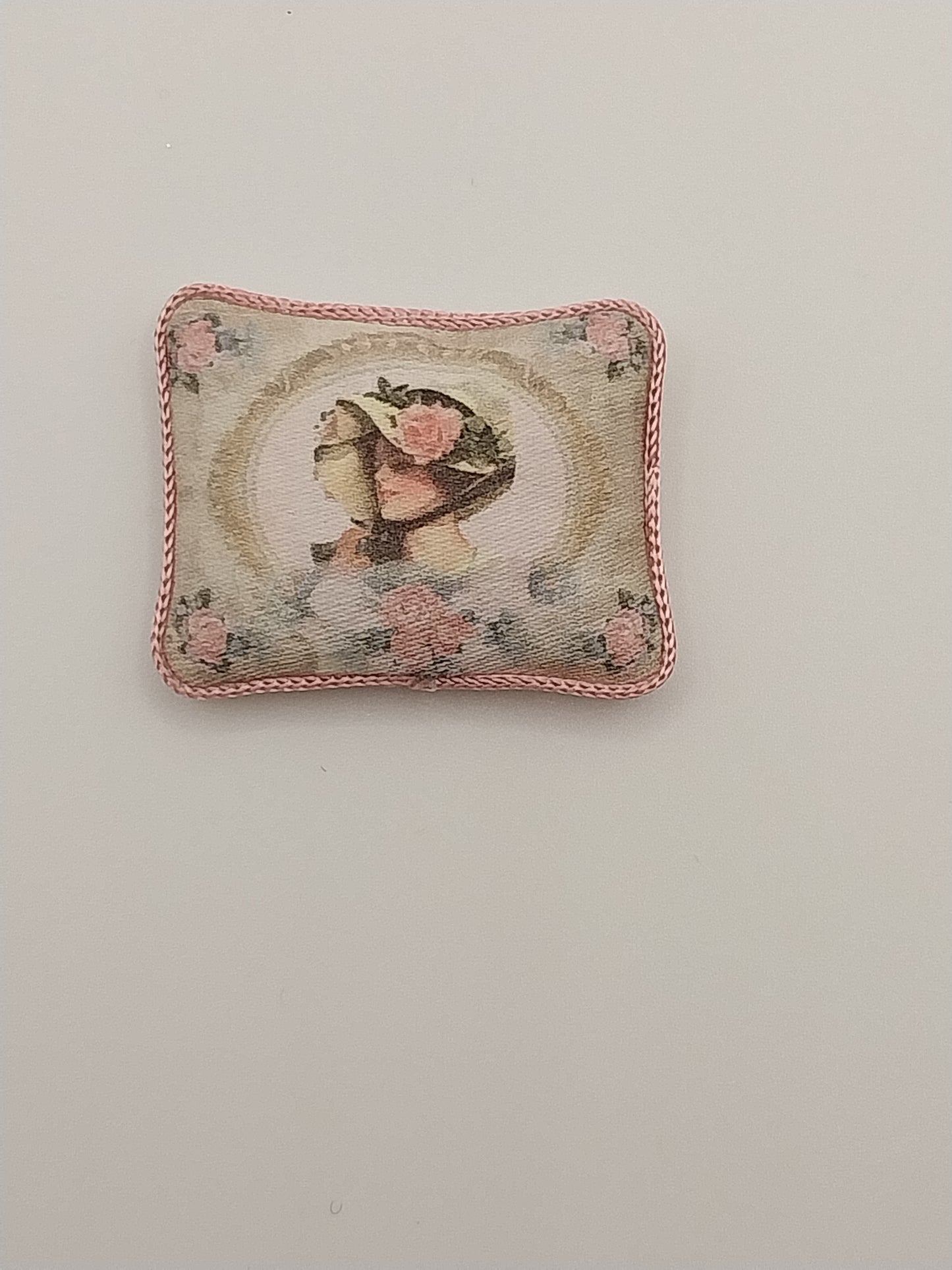 Victorian Pillow with Pink floral, trimmed in a light Pink cording.