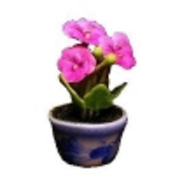 Set of 3 Pink Pansies in a Blue Design Ceramic Pot.