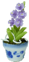 Lavender Orchid in White Pot with Blue Flower Accent.