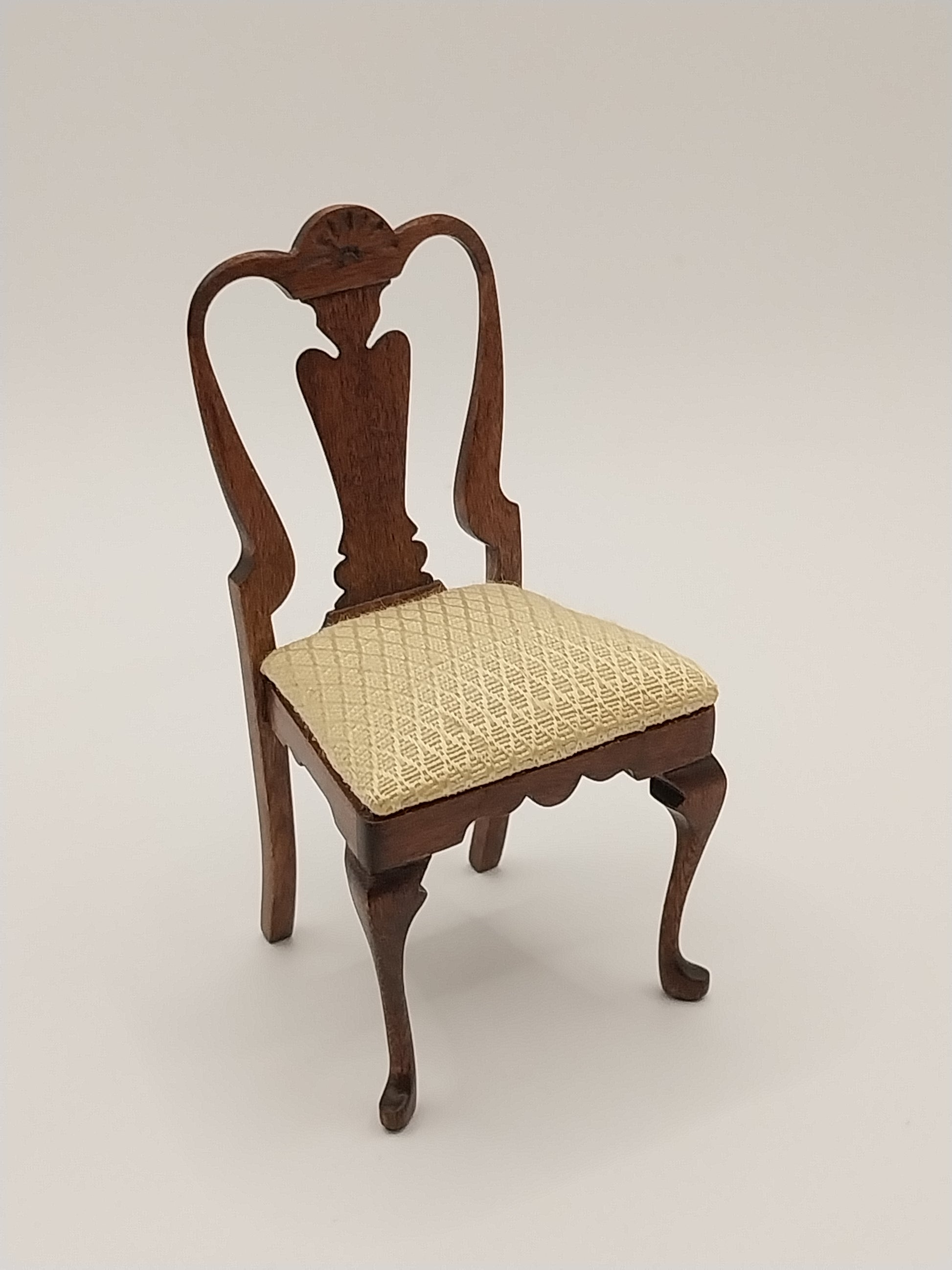 This 9 piece Queen Anne Dining Room Set is made by Artisan Roger Gutheil. Set includes Dining Room Table and 8 Chairs. Each chair is upholstered in a Yellow pattern fabric by Artisan Gail Steffey. Table is signed by Artisan and dated 2002, as well as each chair is signed by both Artisans and dated.