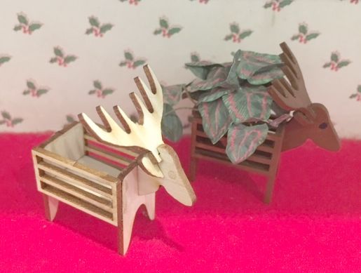 Planter kit is laser cut from wood . Shown assembled with a potted plant sitting inside the planter box. Plant is not included in the kit.