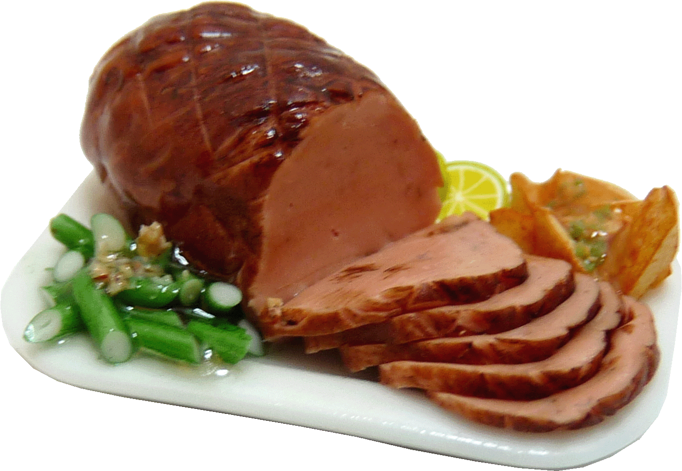 Roast, Green Beans and Potatoes on Ceramic Tray