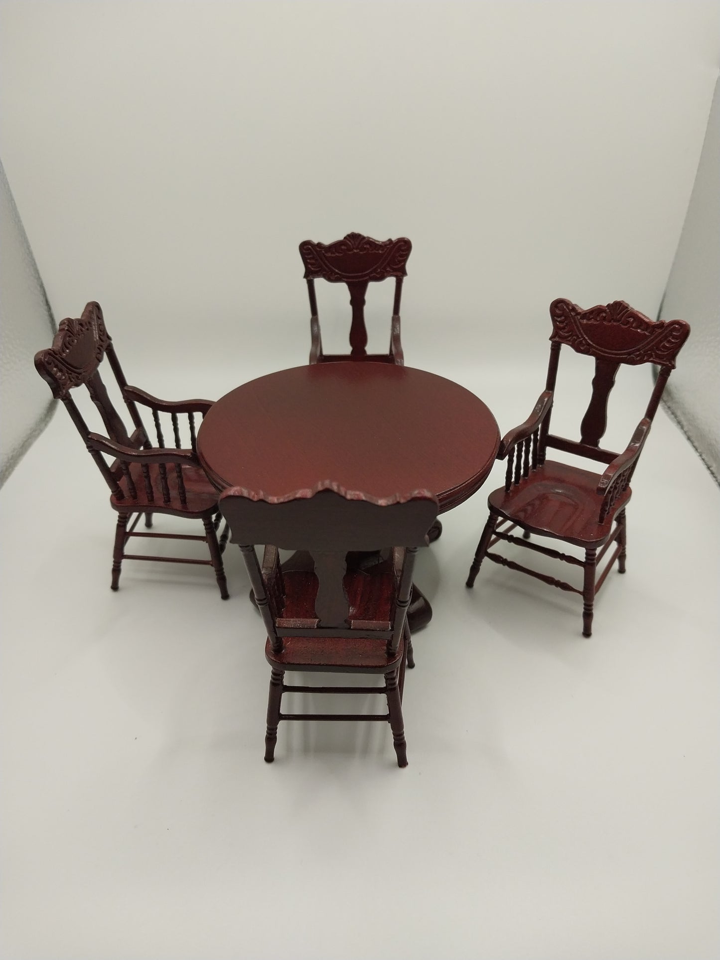 Round Dining Table & 4 Press Back Chairs, Mahogany