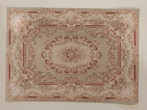 Oriental Rug in a Light Olive, Rose, and Burgundy Colors, with floral design. Made by Green Gypsies.