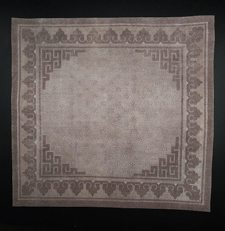 Square Rug with Flower design in center. Rug comes in Browns, Plum, and Tan Color