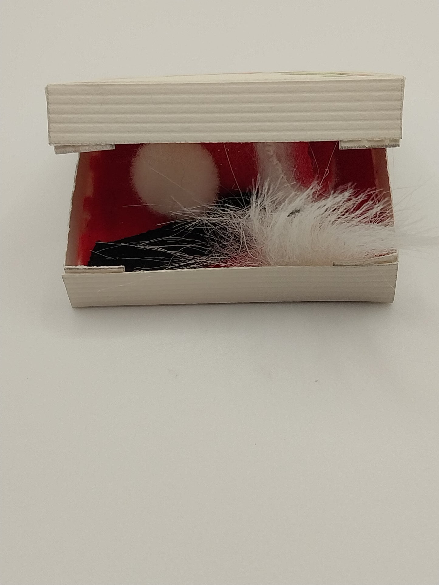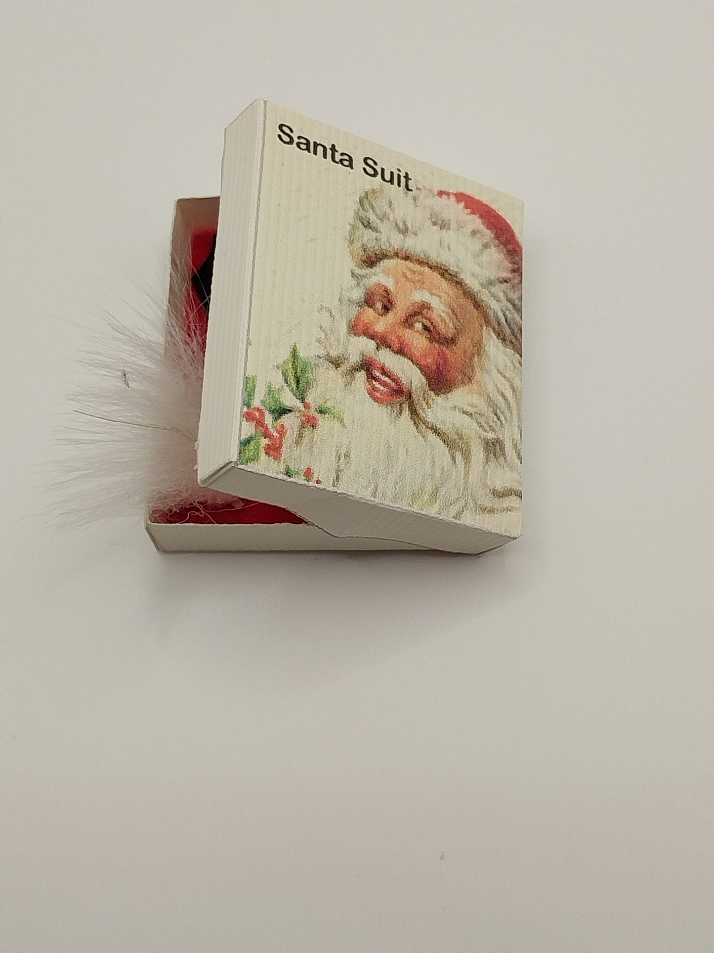Santa Suit Box that is slightly opened with a Santa Suit inside. Santa Suit is not removable. Piece is signed by Artisan Janet Liguori of Taylor Jade.
