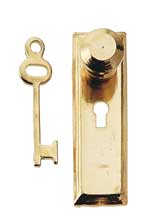 Brass Knob Key Plate, Each set includes one plate with knob and separate key; two sets per package. Made of gold-plated brass.