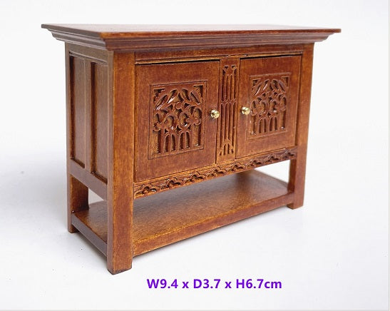 Small 2 door cupboard extensively carved in Jacobean style . A perfect antique accent piece that will look lovely in any living or dinning room. And is available in a walnut finish