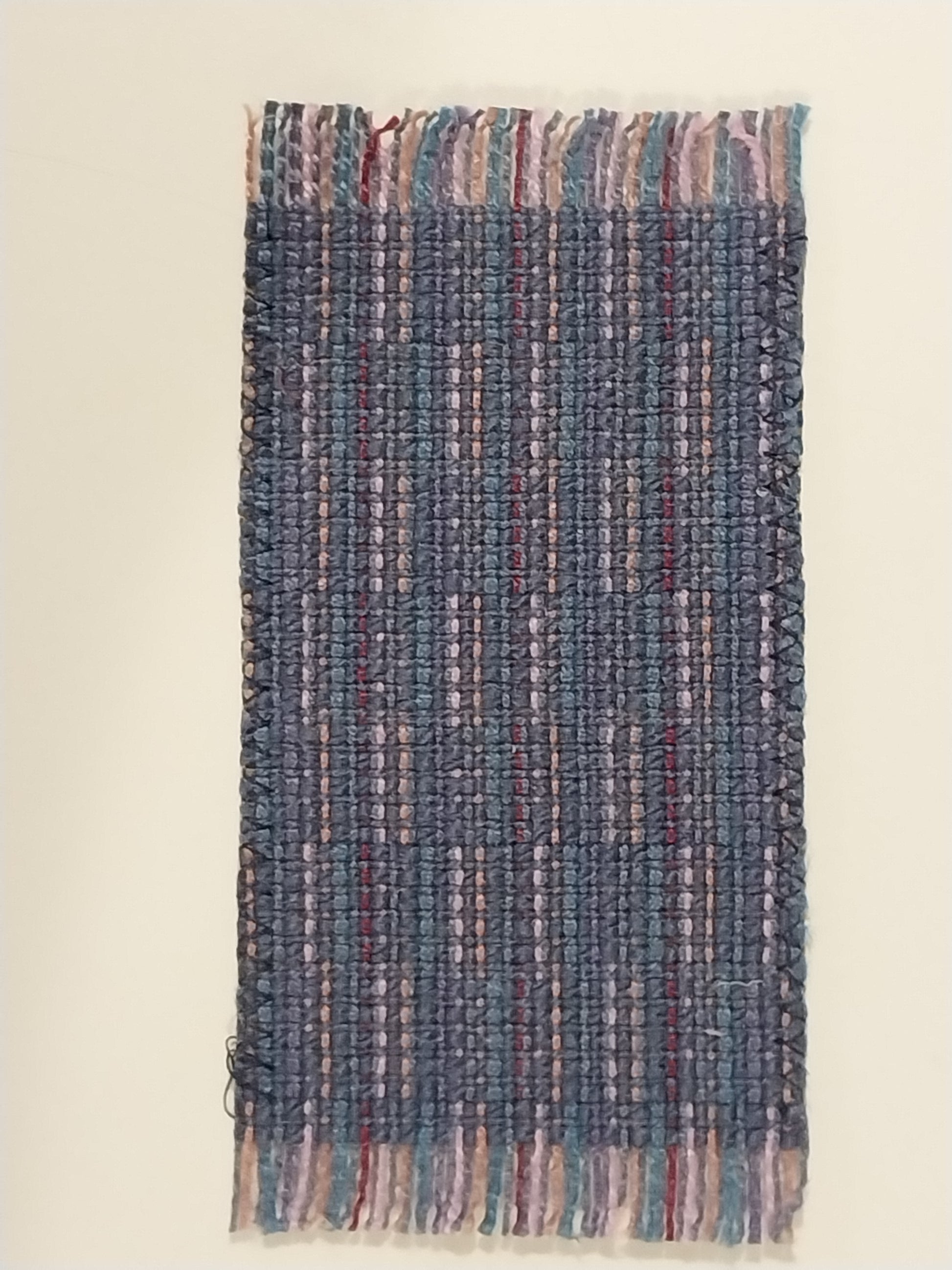Small rag rug, wedgewood blue with lavender, burgundy, rust colors
