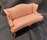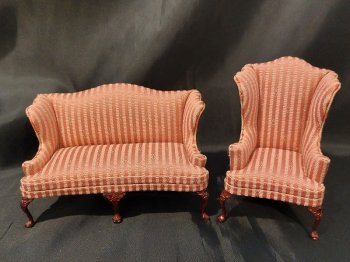 Sofa and Chair, Rose with Cream Stripe, Mahogany
