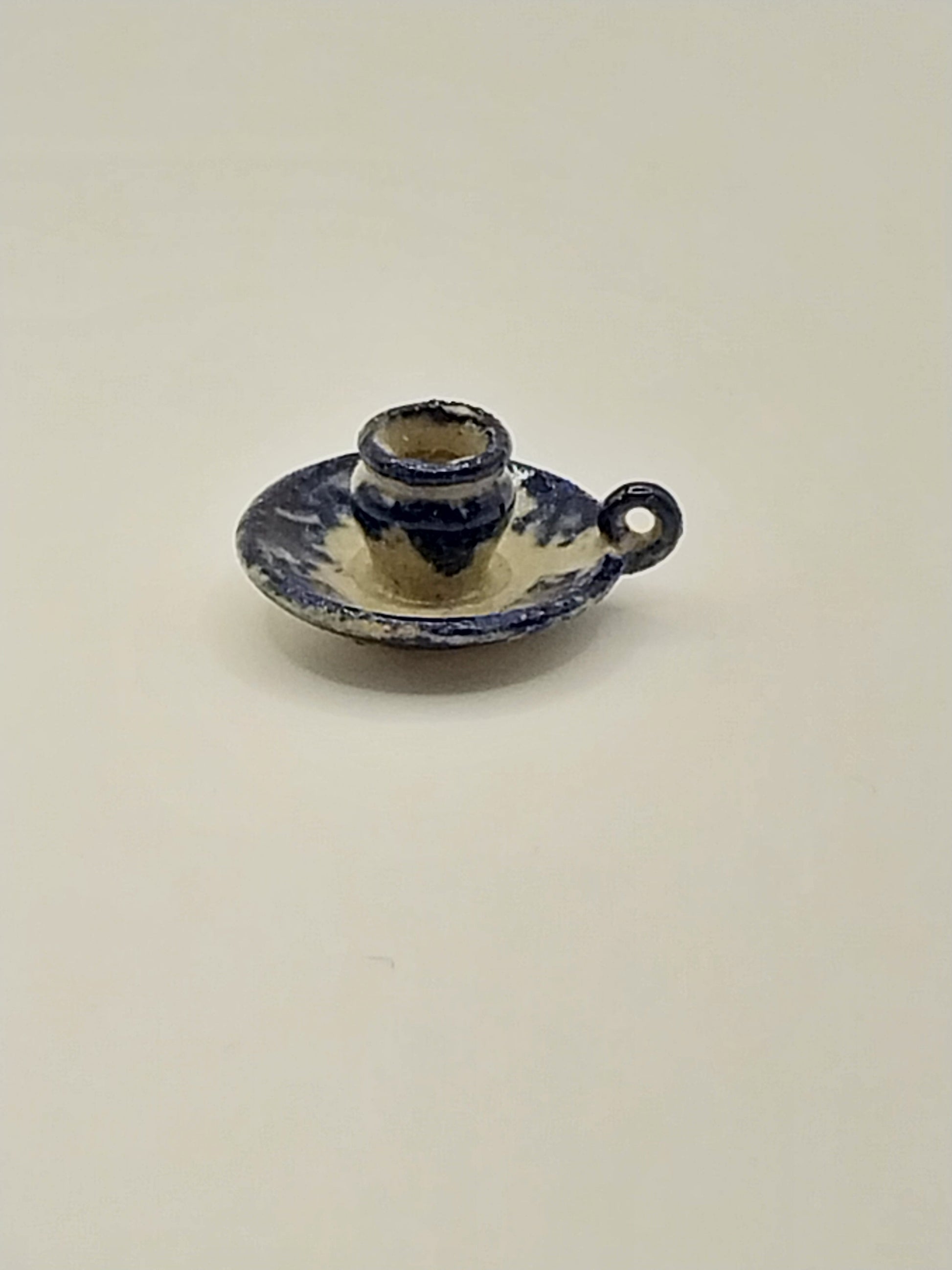This Stoneware Pottery Candle Holder is done by Artisan Jane Graber. Candle Holder is done in a Spongeware finish. Piece is signed and dated by Artisan.