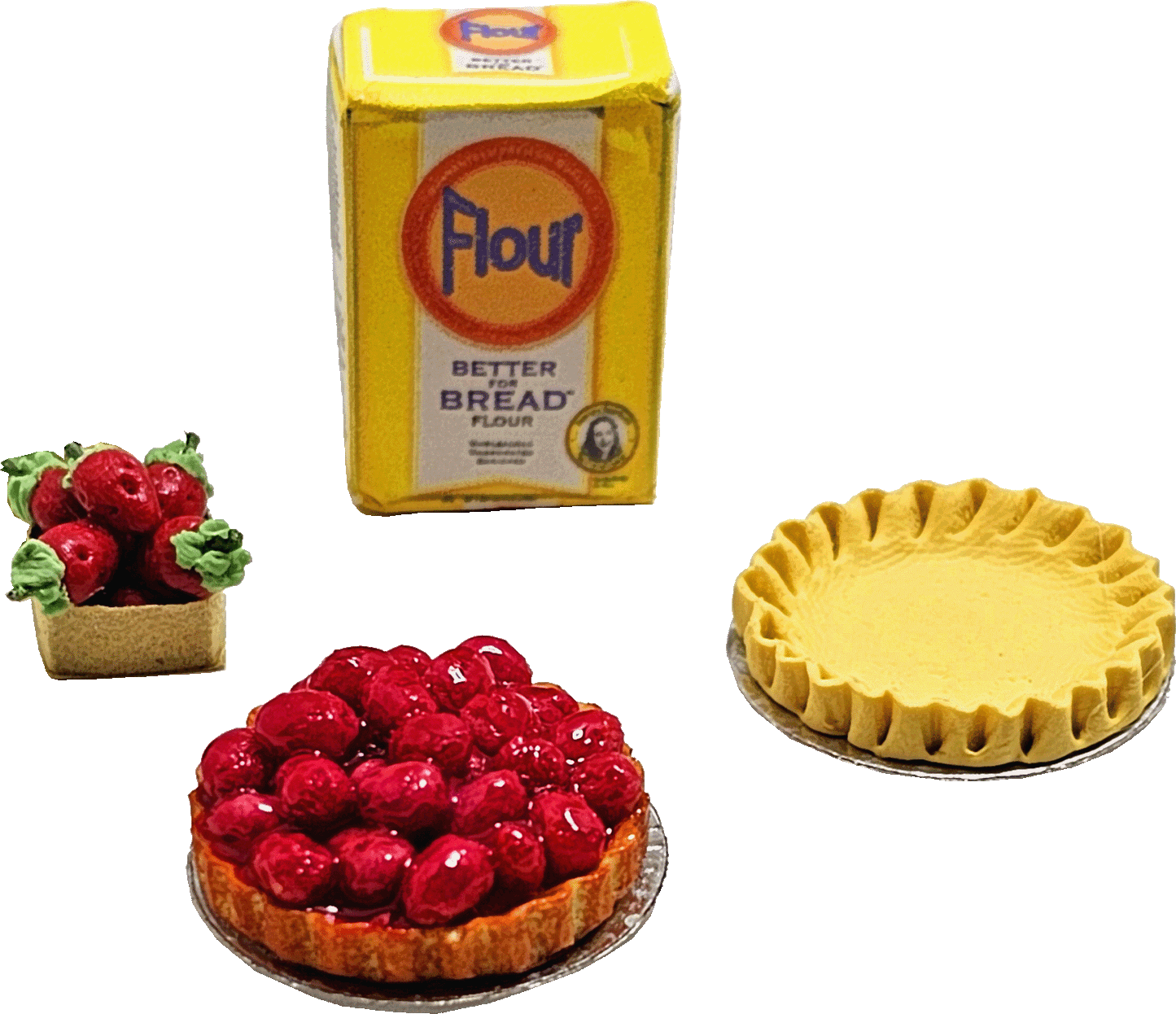 Strawberry Pie Kit, includes bag of flower, bowl of strawberries, pie crust, and strawberry pie.
