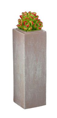 Resin "cement look" planter with succulent plant with red-tipped leaves. Looks great alone or with matching large and small planters.