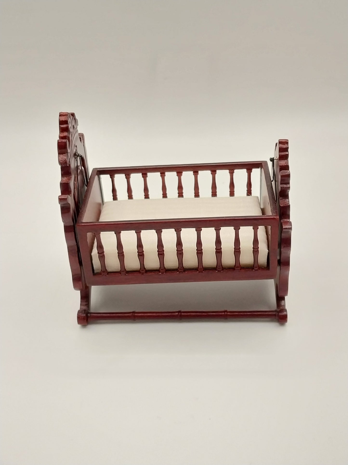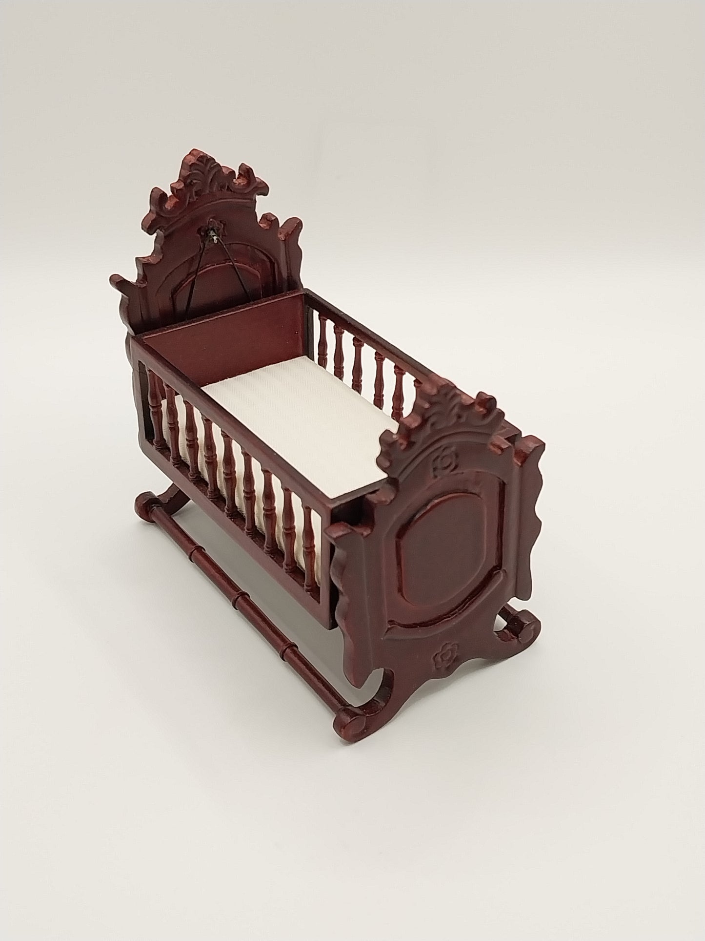 This Taft Cradle is made by Bespaq and comes in a Mahogany finish. Cradle has detailed carved embossed wood with ivory mattress. Cradle actually rocks.