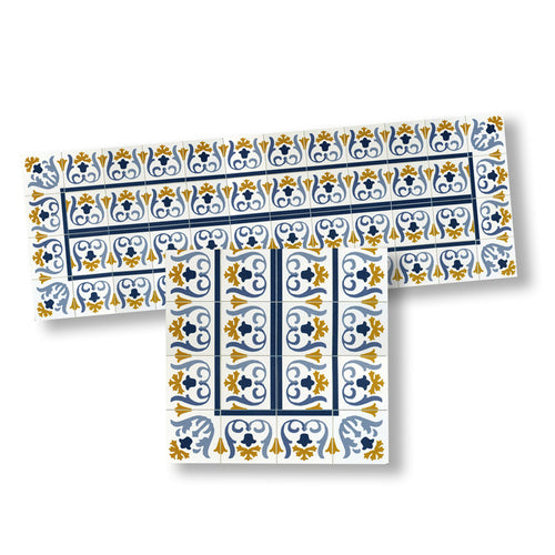 Mosaic Tile Border, White, Gold & Blue Tulip
