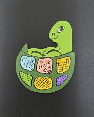Handmade and painted wooden turtle puzzle. Pieces do not come out. Signed and dated. Carland '80