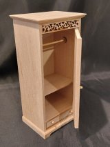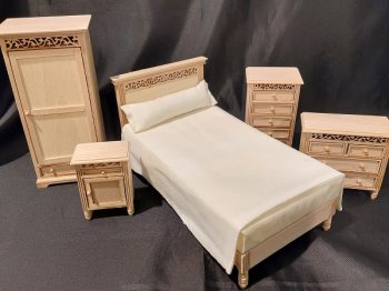 Size: Bed: 3 3/4"W x 6 3/4"D x 3 7/8"H Armoire: 2 3/4"W x 2"D x 5 1/2"H