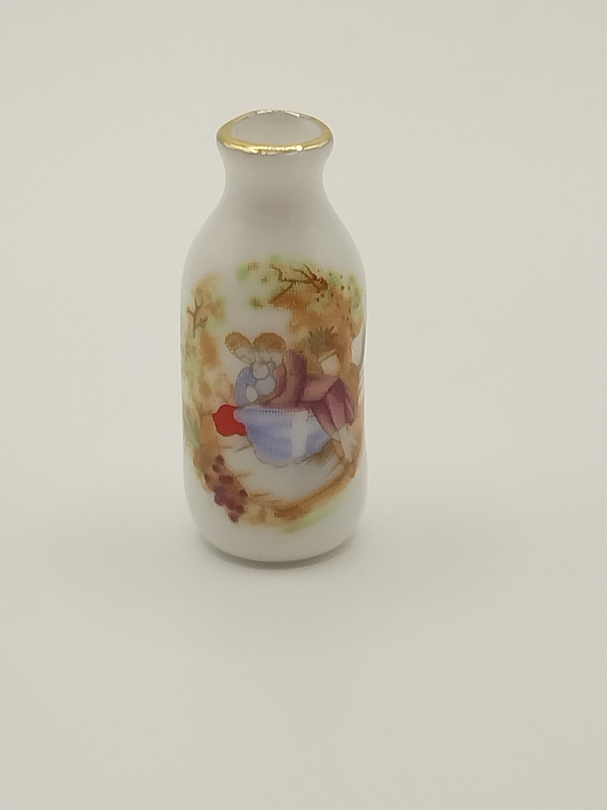 White Vase with gold trim with a couple courting countryside scene.