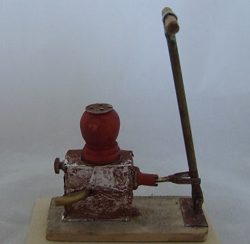 This Vat Pump is handmade by Artisan Fred Cobbs. Pump is on wooden base and made out of soldered metal and copper. Pump actually works.