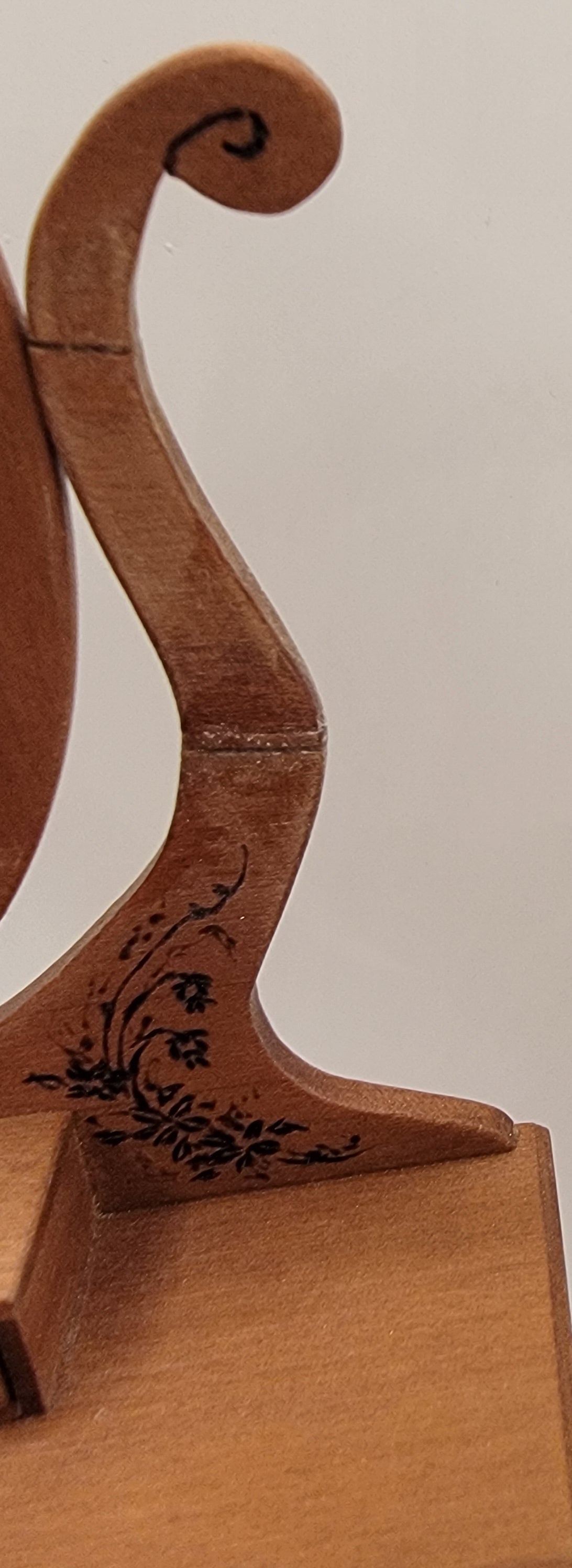 This Dresser is hand carved in cherry with etched floral and butteries on the wood by Artisan Mark Stockton. The piece has some slight damage on the right side of the brace which holds the mirror in place. Piece is signed by Artisan Mark Stockton. Because of this the dresser has been marked down to $34.99 from original price of $80. Single bed and nightstand available #CSK039